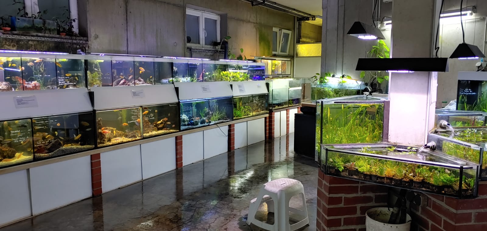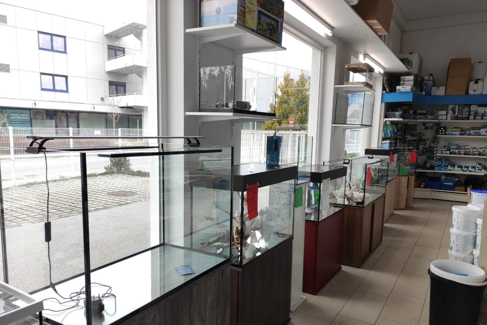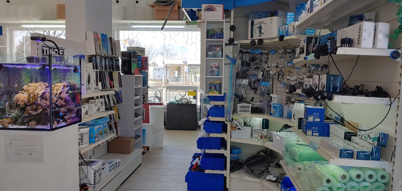 Im Erdgeschoss finden sie Technik für Süß- und Meerwasseraquarien und Teiche. Eine Auswahl an Aquarien, Unterschänken, Abdeckungen und Leuchten sowie Filter, Pumpen, Heizer und Eiweißabsschäumer.